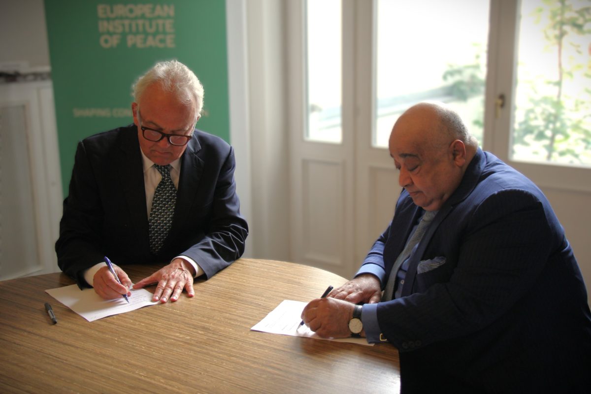 The purpose of the agreement is to establish a collaborative partnership between the European Institute of Peace and the MBI Al Jaber Foundation to undertake projects focused on peacebuilding, youth empowerment, and education, including fellowships and apprenticeships in Iraq, Yemen, Libya, and Sudan and elsewhere.