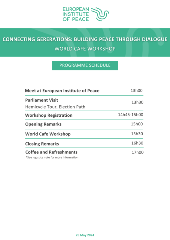 28-29 May, 2024: A series of events to mark the 10th anniversary of the European Institute of Peace to discuss the current challenges to peacemaking and where we go from here.