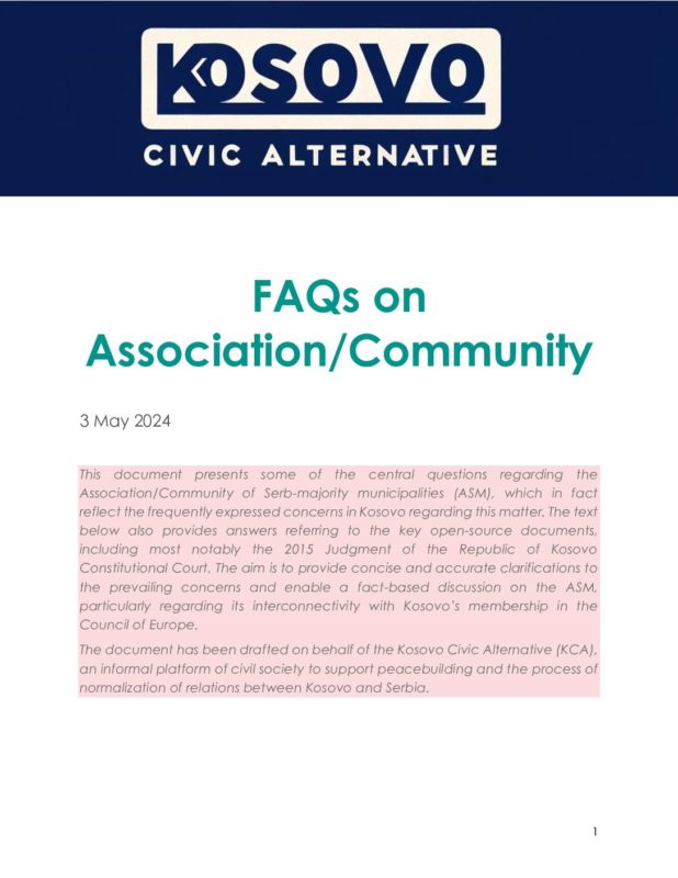 Policy Options and Analysis on Central Issues of Concern in Kosovo-Serbia Dispute Resolution